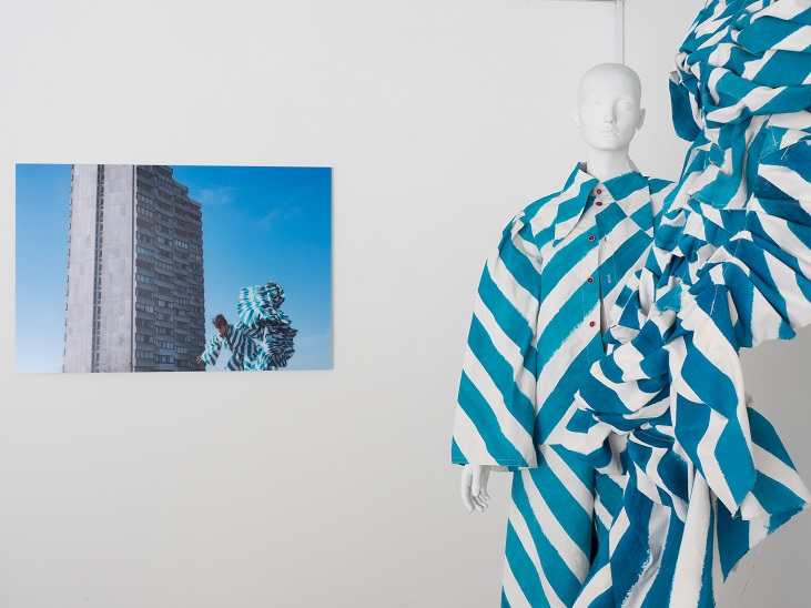 which the ‘garment’ is worn by the artist as part of a performance, set against the