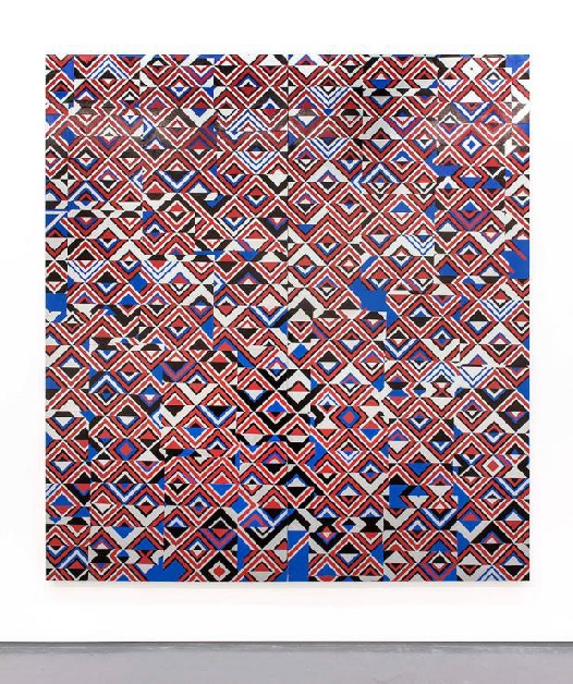 UNTITLED 2015 Spray paint, ink, aluminium tape, paper and varnish on wood 204 x 185 cm