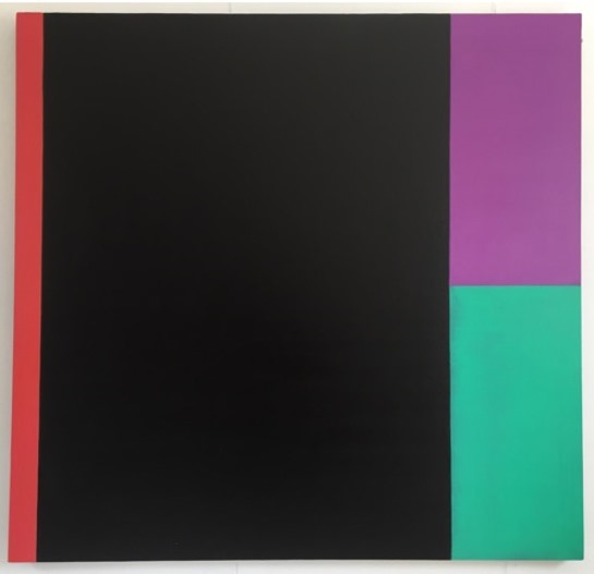 Using materials such as acrylic, oil, collage, wood (sometimes steel), powder pigment and enamel, the unpredictability / predictability and pitch of colour arrangements bring into play a contrast with the reductive position of the work. The colour is applied with the aim of disorientating the viewer, often disbursed or used in compartments to create an odd depth of field, challenging the possibility of order and disorder, and building a highly saturated, optically expansive surface.