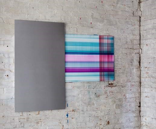 EB: It’s not a conscious reference to anything really. Most of the characteristics of my work are things that have evolved organically through the process of making over the years and so if there’s a grid it might be because it’s seeped in from somewhere, from things that I look at or the stuff that’s around us. The end result, the painted surface, is driven these days by a more loose set of procedures. In the past they were more rigorous and narrow. One of the things I wanted to get across in the show is how the process I use has widened and expanded over the last few years, so there are a number of works that show a much wider range of applications.