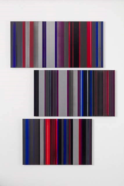KL: Your process of making is very intriguing. I love the way you build up transparent veils of colour, combining vertical lines with horizontal ones in some of the pieces. In this way it appears to reference the grid and Minimalism, but also the warp and weft of weaving. Is there any acknowledgement of design in your work?