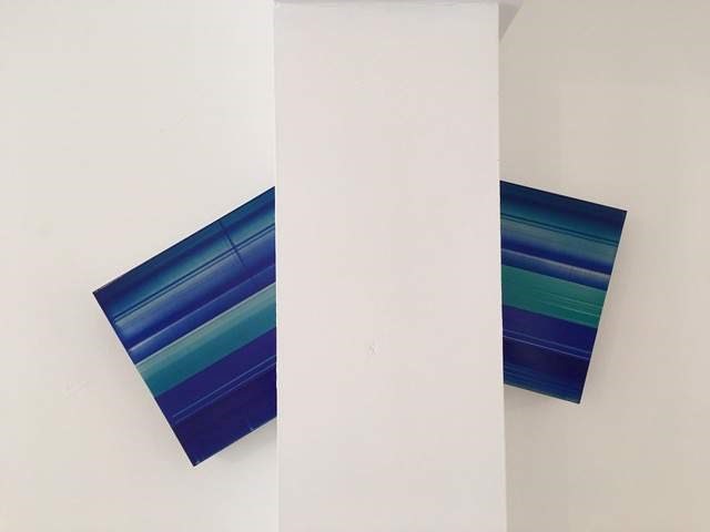 EB: That’s another of those tensions that I find really engaging; the relationship between a flat painted surface and the acknowledgement that it’s only one surface of an object, and although it’s one that is not fully three dimensional it still has sides and still hovers off the wall and there’s a relationship between the painted surface and unpainted surfaces.