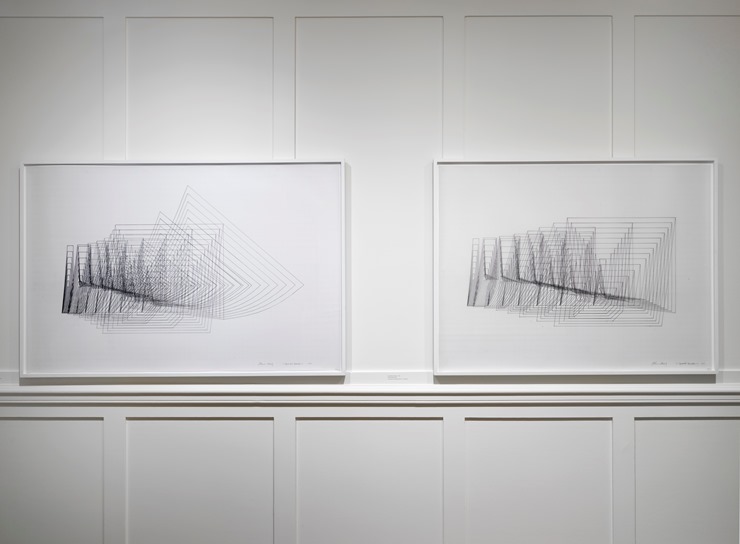 Exhibition view, Channa Horwitz. Works from the series Sonakinatography, 1970–2011, photo by Marcus J. Leith