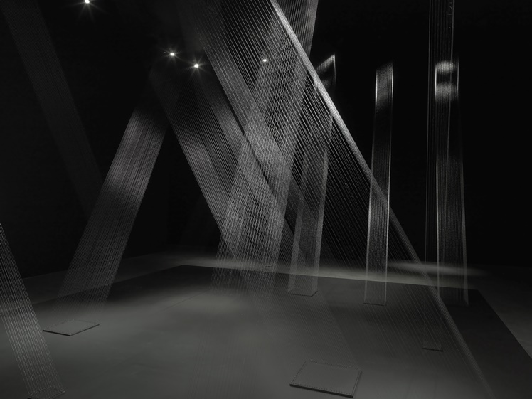 Ttéia 1C (2001 / 2016) Silver thread, wood, nails, light. Dimensions variable. © Projeto Lygia Pape Courtesy Projeto Lygia Pape and Hauser & Wirth. Photo: Ken Adlard
