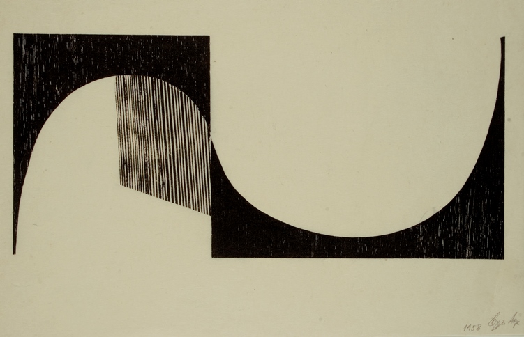 Tecelar (1958). Woodcut print on Japanese paper 29.7 x 41.9 cm / 11 3/4 x 16 1/2 in. © Projeto Lygia Pape Courtesy Projeto Lygia Pape and Hauser & Wirth. Photo: Ken Adlard