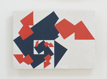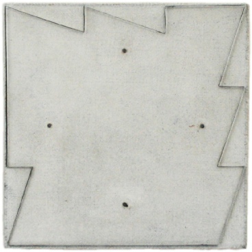 However, in the book we can see that this was a method that Dower explored over a period of several years, and we can presume that she produced many works of this type. At the same time, we have pieces in the show such as Hybrid no.2, 2007, which is genuinely unusual. As the title suggests, it is perhaps a synthesis of elements appropriated from separate series. In the composition there are some familiar geometric structures, but the way they are overlapped and isolated in the centre of the flat ground feels like a slightly eccentric focal point.
