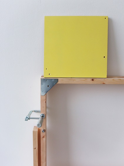 2018 (acrylic paint, MDF, wood, f-clamps, metal brackets) is ‘casual formal’. It