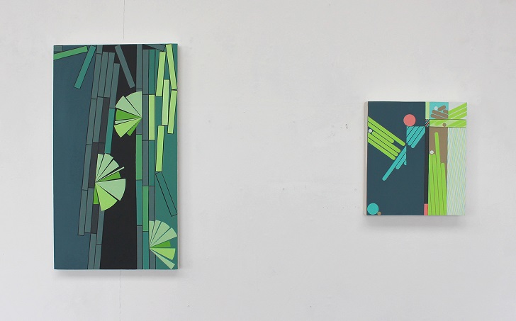 Lounger and Offsetter, are hung on the west wall of the studio space. I think of
