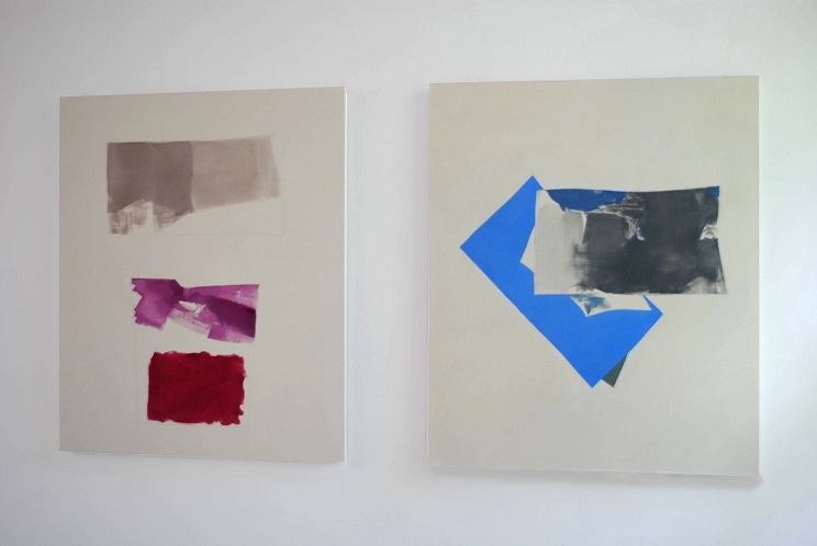 Peter Joseph, Left: Ochre, Light Purple, Dark Red, Sept 2014. Right: Blue and Dark Grey, July 2015
